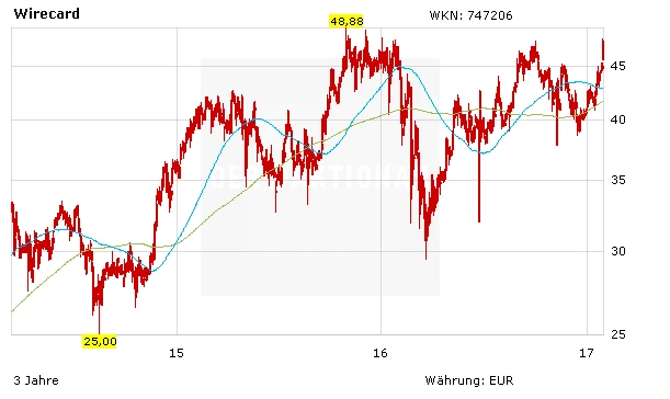 Die Wirecard-Aktie reagiert am Freitag mit einem deutlichen Kursplus und gehört zu den größten Gewinnern im TecDAX. Damit setzt der Kurs seine Erholung fort, nachdem ein Bericht über angebliche Ungereimtheiten in der Bilanz im Februar für einen kurzfristigen Einbruch gesorgt hatte. Am Vormittag ist die Aktie bei 47,89 Euro auf ein neues 52-Wochen-Hoch geklettert. Damit rückt auch das bisherige Allzeithoch von Ende Oktober 2015 bei 48,96 Euro wieder in Schlagdistanz.