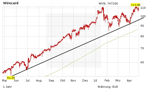 Unterstützt vom anhaltenden Boom beim Online-Shopping und dem Trend hin zur Digitalisierung von Zahlungsprozessen ist Wirecard zwischen Januar und März erneut kräftig gewachsen. Der Konzernumsatz ist im Vergleich zum Vorjahreszeitraum um 52 Prozent auf 417,2 Millionen Euro gestiegen, wie das Unternehmen auf Basis vorläufiger Zahlen mitteilte. Der operative Gewinn vor Zinsen, Steuern und Abschreibungen sei demnach um rund 38 Prozent auf 112,3 Millionen Euro gestiegen. Damit hat Wirecard die Erwartungen der Analysten leicht übertroffen.