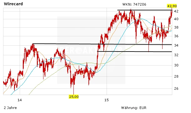Das Analysehaus Warburg Research hat die Einstufung für Wirecard nach einem Gespräch mit dem Finanzvorstand auf "Buy" mit einem Kursziel von 51 Euro belassen. Derzeit würden Währungseffekte sich nicht negativ auf seine Schätzung für das Geschäftsjahr 2016 auswirken, schrieb Analyst Jochen Reichert in einer Studie vom Dienstag. Das gleiche gelte auch für weltwirtschaftliche Einflüsse auf das Geschäft des Zahlungsabwicklers in Südostasien. Daher gebe es vorerst keinen Grund, seine Schätzungen zu überarbeiten.