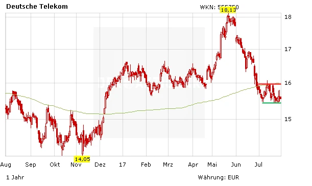 Ein starker Widerstand, der jedoch bald geprüft werden dürfte. Denn am Donnerstag, den 3. August veröffentlicht die Deutsche Telekom die Zahlen für das zweite Quartal. Die Schätzungen der Analysten, lassen hoffen: Der Erlös dürfte um 5,1 Prozent auf 18,9 Milliarden Euro ansteigen. Die operativen Gewinne sollen um 5,7 Prozent auf 5,8 Milliarden zulegen.