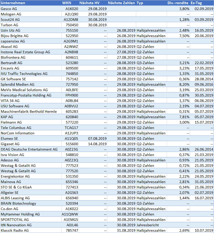 Die Berichtssaison der deutschen Blue Chips ist weitgehend abgeschlossen, einige Nachzügler melden in dieser Woche. In der zweiten Reihe stehen dagegen bis Ende September viele Zahlentermine an. Scout24 und Gesco laden zur Hauptversammlung ein – für Anleger gibt es danach einen Dividendenregen.