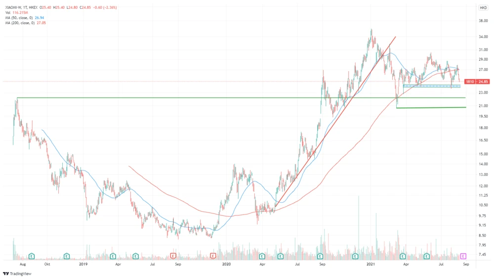 Bei den chinesischen Tech- und Internet-Aktien hat es zuletzt richtig gescheppert. Seit der Regulierungswelle in China befinden sich unter anderem die Anteilscheine von Alibaba, Bilibili oder Tencent noch immer auf Talfahrt. Die Xiaomi-Aktie hat sich zwar bisher verhältnismäßig gut gehalten, steht aber im Moment an einer enorm wichtigen Marke. Das sind die Details.