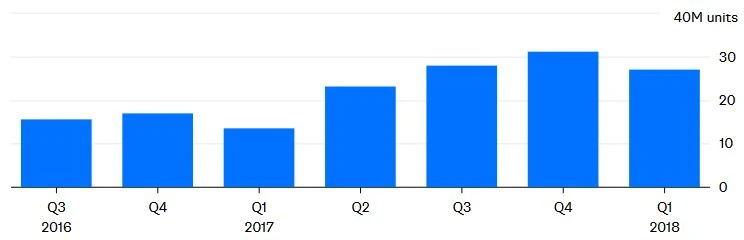 Verantwortlich für die starken Umsätze und etwa die Hälfte der operativen Gewinne ist das Smartphone-Geschäft. Im ersten Quartal verkaufte Xiaomi 27 Millionen Geräte. Den größeren Teil der operativen Einnahmen generiert der Börsenneuling durch zahlreiche Investments.