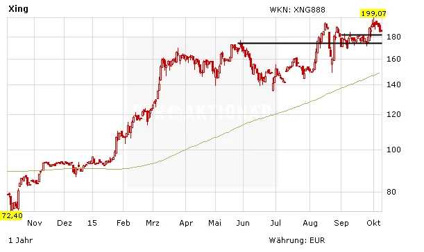 Diese Performance kann sich sehen lassen. Seit Jahresbeginn legte die Xing-Aktie um 100 Prozent zu. Die Rallye scheint weiterzugehen. Letzte Woche markierte der Titel bei 199,07 Euro ein neues Allzeithoch und generierte somit ein Kaufsignal.