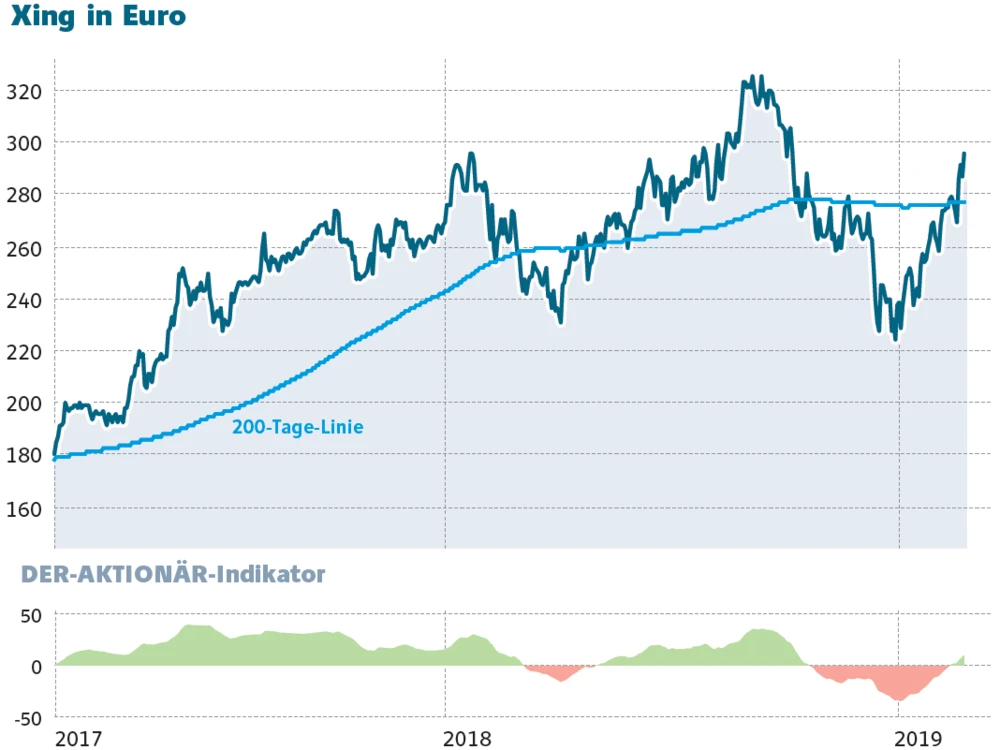 Charttechnisch haben sich die Xing-Anteilsscheine nach einem turbulenten Börsenjahr 2018 wieder um einige Prozentpunkte erholt. Nachdem die Aktie im letzten Quartal ordentlich Federn hat lassen, setzte mit Beginn des neuen Jahres eine fulminante Erholungsrallye ein. Innerhalb der vergangenen zwei Monate konnte sich die Xing-Aktie um rund 25 Prozent verteuern.