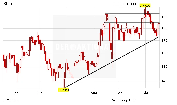 Der Chart der Xing-Aktie liefert ein gutes Bild. Der langfristige Aufwärtstrend ist trotz der leichten Konsolidierung weiterhin intakt. Die Unterstützung bei 175 Euro hat erneut gehalten. Nach oben steht als nächstes der Widerstand bei 184 Euro im Fokus. Sollte ein nachhaltiger Ausbruch über diese Marke erfolgen, würde der Blick auf den Bereich bei 193 Euro fallen. Anschließend wäre der Weg bis zum Rekordhoch bei 199 Euro frei.