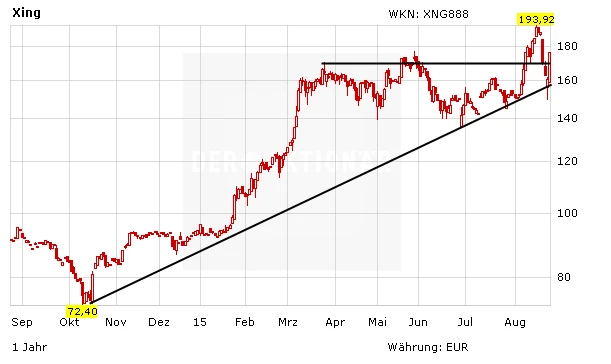 Die Xing-Aktie gibt wieder Gas. Am heutigen Dienstag gehört der Titel zu den Top-Performern im TecDAX. Der starke Kursverlust vom Vortag konnte kompensiert werden. Das Allzeithoch ist nur noch knapp zehn Prozent entfernt.