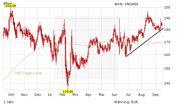 Trotz der hohen Bewertung mit einem KGV von 36 rät DER AKTIONÄR spekulativen Anlegern zum Kauf. Das angestrebte Wachstum bleibt hoch, sodass mittel- bis langfristig die Papiere von Xing profitieren werden. Zudem befindet sich die Aktie durch den gestrigen Kursanstieg in einer aussichtsreichen charttechnischen Position.