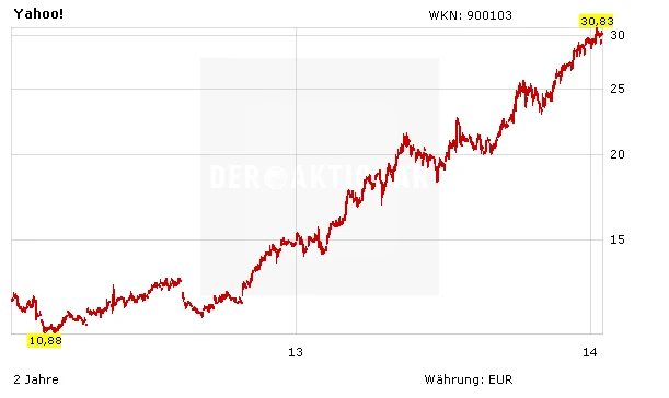 Die Yahoo-Aktie präsentiert sich indes weiter enorm stark. Wie an der Schnur gezogen marschiert das Papier derzeit von einem Hoch zum nächsten. Seit der Empfehlung des AKTIONÄR im Oktober vergangenen Jahres notiert die Aktie mittlerweile knapp 30 Prozent im Plus. Der Stopp sollte zur Absicherung auf 22,70 Euro und damit knapp unter das Oktobertief 2013 nachgezogen werden.
