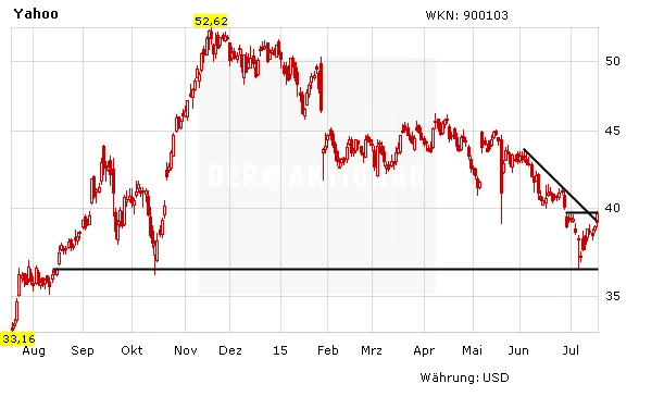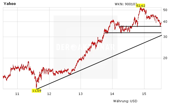 DER AKTIONÄR rät spekulativ orientierten Anlegern dazu, die Aktie zu kaufen. Es besteht die Möglichkeit, dass es zu einem ähnlichen Run auf das Papier wie nach dem Alibaba-IPO im letzten September gibt. Denn auf Basis der Beteiligungen ist Yahoo unterbewertet. Deswegen dürfte auch Analyst Stephen Ju von der Credit Suisse sein Kursziel von 66 Dollar bestätigt haben.