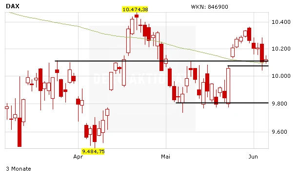 DER AKTIONÄR hat am Montag im Rahmen des DAX-Check bei DER AKTIONÄR TV ein Long-Produkt empfohlen, mit dem Trader darauf setzen können, dass die 200-Tage-Linie hält und der DAX wieder Anlauf auf die jüngsten Bewegungshochs nimmt. Der Stoppkurs sollte bei umgerechnet 10.030 Punkten platziert werden.