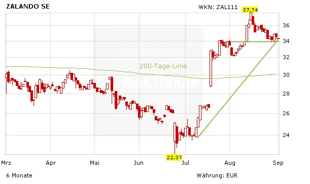 Das Analysehaus Warburg Research bleibt bei der Kaufempfehlung und hat das Kursziel für die Zalando-Aktie angehoben. Die Analysten gehen von einem fairen Wert von 50 Euro aus. Das vorherige Ziel lag bei 34 Euro. Sie trauen damit dem Titel bei einem jetzigen Kurs von 34,41 Euro ein Upside-Potenzial von 47 Prozent zu.