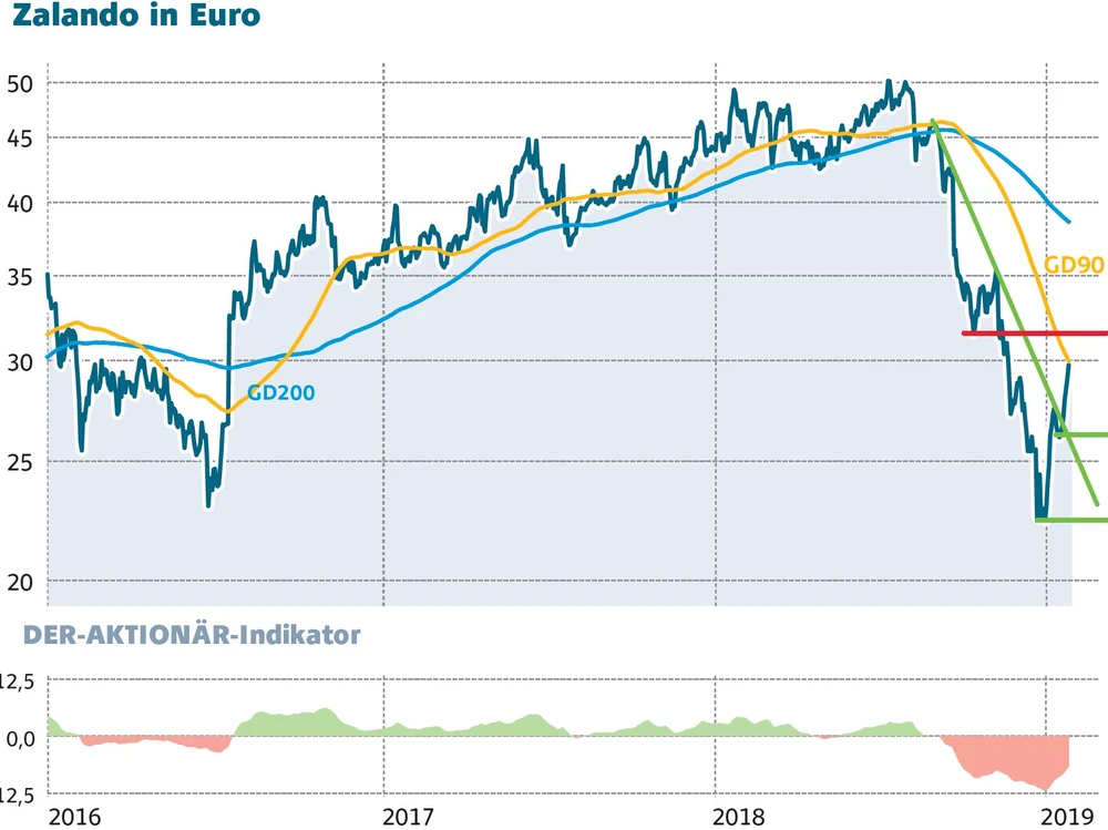 DER AKTIONÄR hat Zalando in Ausgabe 2 bei 22,40 Euro und damit fast im Tief empfohlen. Seitdem liegt die Aktie 32 Prozent vorne. Das macht die Aktie anfällig für Rücksetzer. Anleger, die der Empfehlung gefolgt sind, können einen Teil der Gewinne mitnehmen und den Stopp auf 24 Euro nachziehen.