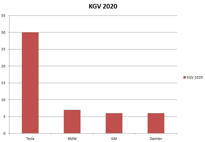 Auch beim KUV ist Tesla aktuell "teuer" im Vergleich zur Peergroup. Es liegt 5 mal so hoch. Bis 2022 wird sich das Kurs-Umsatz-Verhältnis von Tesla zwar in etwa halbieren. Aber Tesla hat klar einen Bewertungsaufschlag, da sie als Wachstumsaktie gilt. Das kann gerechtfertigt sein, wenn Tesla weiterhin die Herzen der Kunden gewinnt und den Elektroautomarkt in Zukunft trotz wachsender Rivalen dominiert. Klar ist aber auch: Eine Abweichung von den Wachstumsplänen von Musk und den Analysten würde eine solche Bewertung nicht verzeihen - Tesla muss weiter wachsen.