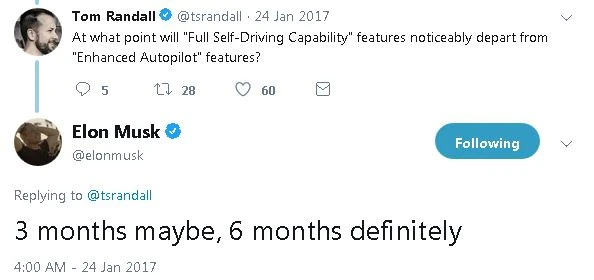 Bereits im Oktober sagte er: „Ich wurde mit zu vielen hoffnungsvollen Wünschen und Lügen über die Zukunft gefüttert. Ich habe es aufgegeben, Tesla und Elon Musk alles zu glauben, was sie sagen.“