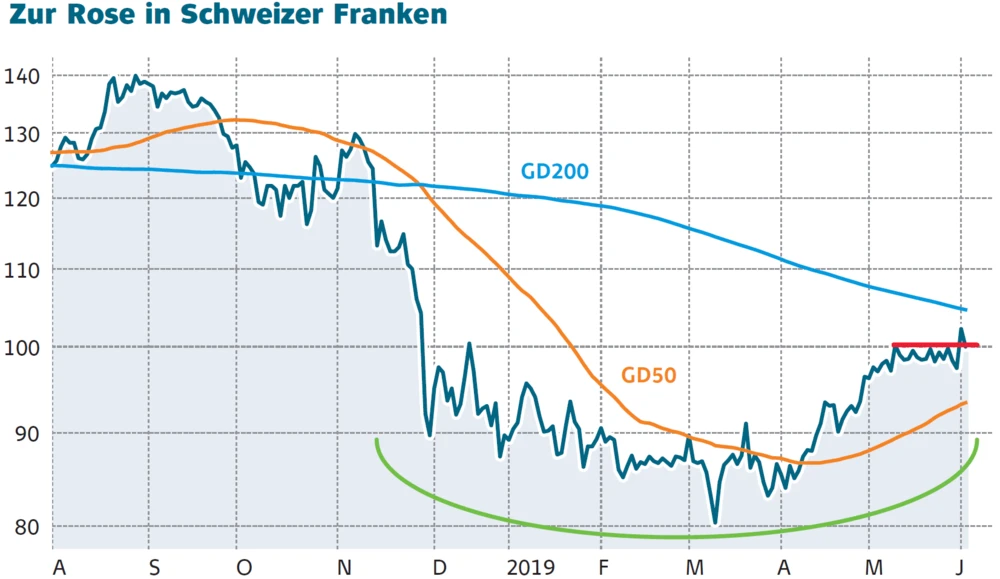 Gelingt den Papieren der nachhaltige Sprung über die Marke von 100 Schweizer Franken und damit ein Kaufsignal, dürfte die 200-Tage-Linie bei 104,60 Franken angesteuert werden. Im Anschluss wäre der Weg in Richtung 120 Franken frei. Die Aktie bleibt für mutige Anleger kaufenswert. Ein Stopp bei 68,00 Euro sichert nach unten ab.