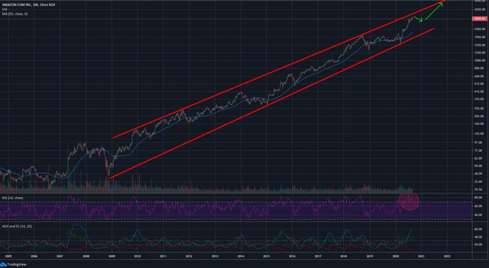 Mit der enormen Trendstärke des Kurses sollte die Amazon-Aktie sich weiterhin innerhalb des Trendkanals bewegen. Nach dem Rücksetzer wären im Bullenszenario rechnerisch somit bis 2022 etwa 5.000 Dollar möglich.