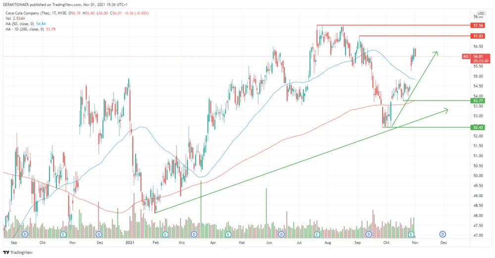 Coca-Cola stärkt mit dem Zukauf seine Position in der Sportgetränke-Nische. Ob sich der Zukauf rechnen wird, bleibt abzuwarten. Die Anleger sind allerdings in guter Stimmung, die Aktie ist seit rund vier Wochen wieder auf Erholungskurs. Die nächste technische Hürde stellt der massive Widerstandsbereich bei 57/58 Dollar dar. Investierte Anleger lassen die Gewinne laufen. Zur Absicherung nach unten gilt weiterhin: Stoppkurs für die Coca-Cola-Aktie bei 34,00 Euro setzen.