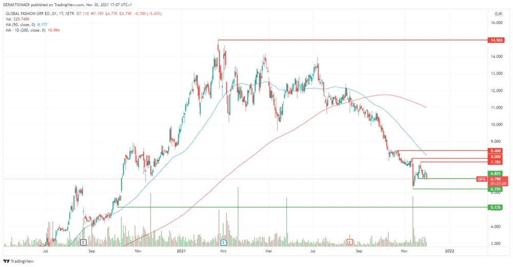 In 2020 gehört der Online-Modehändler noch zu den Top-Performern am Kapitalmarkt. Die GFG-Aktie legte vom Corona-Tief im März 2020 bis zum Jahreshoch bei 14,97 Euro im Februar 2021 um mehr als 1.200 Prozent zu. Dann lieferten sich die Bullen und Bären einen harten Kampf und die Volatilität stieg stark an. Unter großen Schwankungen lief der Titel bis zum Sommer seitwärts.