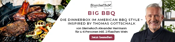 Top, die Wette gilt: Denn mit der „Big BBQ Box inspired by Thomas Gottschalk“ haben Sie jetzt alles, was Sie für Ihren Grillabend brauchen. Ein Rundum-sorglos-Paket, das Ihr Grillevent mit einem Klick in einen Gourmetgenuss verwandelt. Nie war es einfacher, vier bis sechs Personen zu verköstigen.