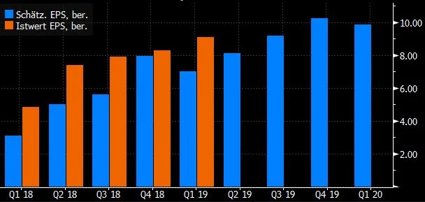 Im Q1 hatten die Analysten (laut Bloomberg) einen GAAP-Gewinn von 4,67 Dollar pro Aktie und einen bereinigten Gewinn von 7,02 Dollar pro Aktie erwartet. Letztendlich schaffte das Bezos-Imperium 7,09 respektive 9,10 Dollar und pulverisierte damit die Prognosen.