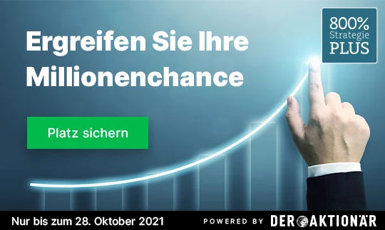 Jetzt eröffnet sich Ihnen die Chance, ebenfalls von dieser Erfolgsgeschichte zu profitieren – denn der Börsendienst hat aktuell wieder seine Tore für Neuanmeldungen geöffnet. Nutzen Sie dieses schmale Zeitfenster und steigen Sie ein, denn die Pforten schließen sich bereits am 28. Oktober 2021 wieder für unbestimmte Zeit.