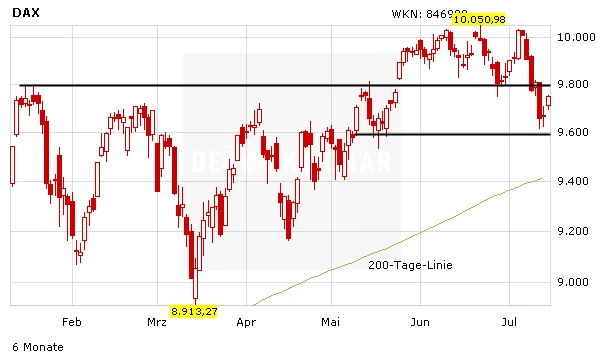 Nach dem deutlichen Rücksetzer in der Vorwoche hat der DAX am Montag mit der Euphorie des Weltmeistertitels im Rücken einen ersten Erholungsversuch gestartet. Der deutsche Leitindex legte bis zum frühen Nachmittag 0,9 Prozent auf 9.747,75 Punkte zu. Weltmeisterlich ist die Stimmung im Aktienmarkt aber noch nicht.