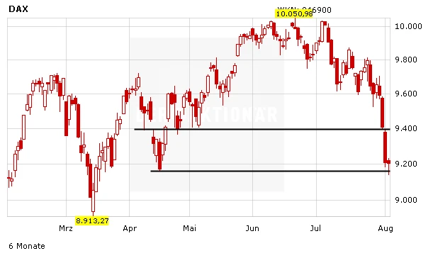 Der DAX ist am Montag erneut unter Druck geraten. "Der Trend hat gedreht und der Markt ist derzeit nicht in der Lage positive Impulse wie am Morgen aus Asien aufzunehmen und für eine Erholung zu nutzen", sagte ein Händler. Vor allem technische Faktoren verstärkten den Druck, auch nachdem die 200-Tage-Linie bei aktuell 9.490 Punkten so widerstandslos aufgegeben worden war. Einem weiteren Händler zufolge kamen erschwerend schwache Sentix-Daten hinzu, die den schwer angeschlagenen Markt weiter belasteten.