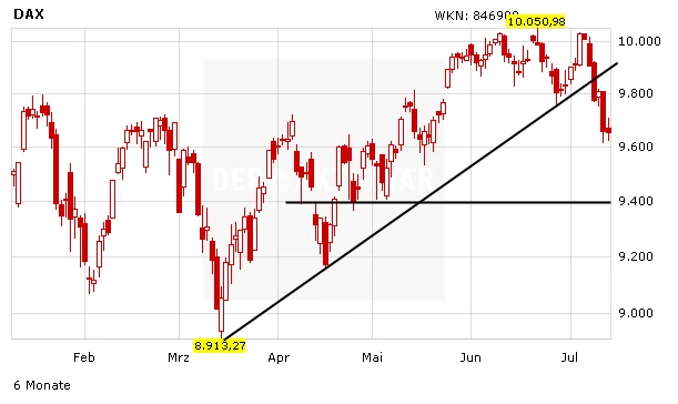 Der DAX hat in der zurückliegenden Woche deutliche Kursverluste einstecken müssen. Zu den anhaltenden Konflikten im Irak, in Israel und in der Ukraine hat sich inzwischen die Furcht vor einer erneuten Erschütterung des europäischen Bankensystems hinzugesellt. Auslöser dafür waren Sorgen um die portugiesische Großbank Banco Espirito Santo. Diesen möglichen Belastungsfaktoren steht aber die Zuversicht entgegen, dass zumindest in den USA und in China der Konjunkturmotor besser läuft als zuletzt in der Eurozone.