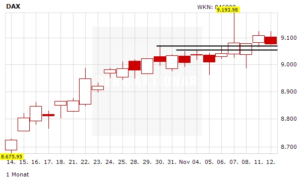 Aus Sicht eines Traders könnte sich beim DAX die Situation am Mittwoch etwas eintrüben. Es droht ein Fall unter die Unterstützungen bei 9.070 und 9.053 Punkten. Anleger sollten deshalb den Stoppkurs für den empfohlenen Turbo-Long der DZ Bank mit der WKN DZJ 8YE (Kaufkurs: 10,06 Euro) im Auge behalten. Der liegt bei 9.040 Zählern oder umgerechnet 13,00 Euro. Die übergeordneten Trends sind aber weiter nach oben gerichtet und intakt.