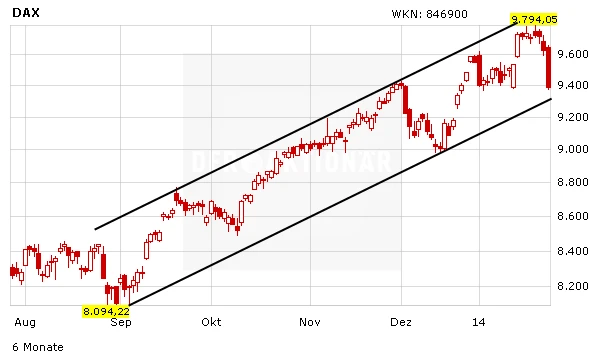 Die Investoren sorgten sich über die Turbulenzen an den Kapitalmärkten der Schwellenländer und zuletzt eher schwachen Konjunkturdaten aus China, sagte Händler Darren Clarke von Gekko Global Markets. Anleger blicken außerdem auf die US-Notenbanksitzung am Mittwoch dieser Woche. Der Markt erwartet eine weitere Kürzung der Anleihekäufe um noch einmal zehn Milliarden Dollar im Monat. Befürchtet wird, dass die Fed den Ausstieg aus den Anleihekäufen in den kommenden Monaten beschleunigt. Kann die Notenbank die Märkte am Mittwoch diesbezüglich beruhigen, wäre eine schnelle Rückkehr in den Aufwärtstrend zu erwarten, ansonsten dürfte sich die Korrektur fortsetzen.