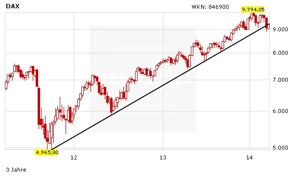 Russlands Präsident Vladimir Putin hat mit seiner Rede vor dem Kreml eine Kaufwelle am deutschen Aktienmarkt ausgelöst. Trotz der Sorge um eine Eskalation der Krise ist der DAX wieder über die Marke von 9.200 Punkten gestiegen. Mittlerweile könnte der Leitindex sogar in seinen langfristigen Aufwärtstrend zurückkehren.