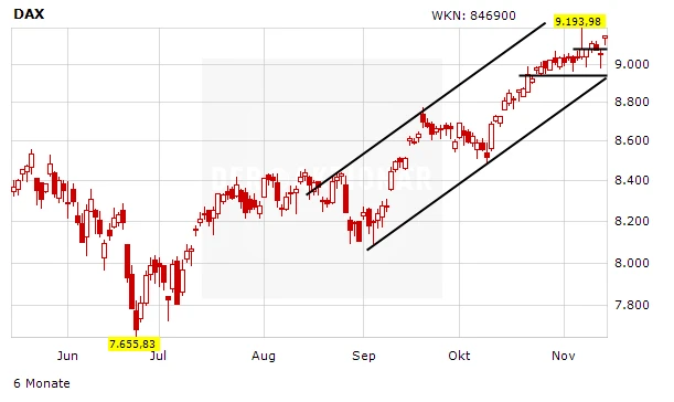 Der deutsche Aktienmarkt dürfte nach den kräftigen Gewinnen am Vortag kaum verändert in den Freitagshandel starten. Der Broker IG taxiert den DAX vor dem Börsenstart 0,01 Prozent höher bei 9.151 Punkten. Am Vortag war der deutsche Leitindex so hoch wie noch nie zuvor aus dem Handel gegangen.