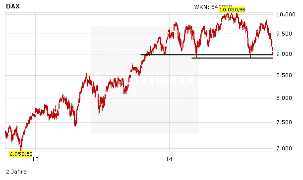 Schwache Vorgaben von den internationalen Börsen sorgen neben ausbleibenden positiven Impulsen für weitere Verluste im DAX. Am Mittwoch verliert der deutsche Leitindex im frühen Handel 0,81 Prozent auf 9.013,06 Punkte. Damit liegt der Index weiter auf dem niedrigsten Niveau seit Anfang August und steuert auf die Marke von 9.000 Punkten zu. Der MDAX fällt um 1,00 Prozent auf 15.395,50 Punkte und der TecDAX sank um 1,32 Prozent auf 1.187,15 Punkte. Beim Eurozonen-Leitindex EuroStoxx 50 stand nach dem Start ein Minus von 0,39 Prozent zu Buche.
