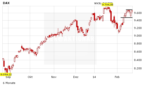 Die Charttechnik gibt derzeit noch keinen Anlass zur Sorge. Dies könnte sich aber schlagartig ändern, sollte die Marke von 9.500 Punkten nachhaltig unterschritten werden. Solange dies nicht passiert, bleibt DER AKTIONÄR im Turbo-Long mit der WKN DZP 3M4 engagiert. Der Stoppkurs liegt bei 10,70 Euro.