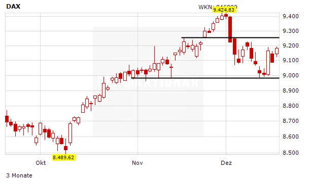 Der DAX dürfte die Vorgaben aus Übersee aufnehmen und auch den Widerstand bei 9.255 Punkten überwinden. Es sind zwar nur noch drei Handelstage bis Weihnachten, die Zeit könnte jedoch ausreichen, um ein neues Allzeithoch zu erklimmen. Der empfohlene Turbo-Bull mit der WKN DZP 3C5 (Kaufkurs: 7,86 Euro) ist daher weiterhin kaufenswert.