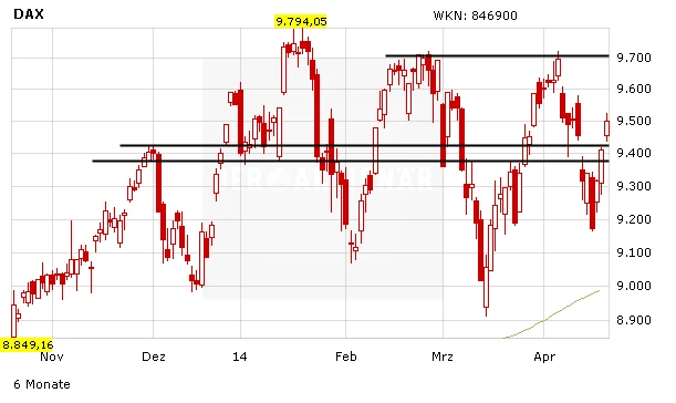 Einige Marktexperten hatten nach den Osterfeiertagen mit einem ruhigen Handel und eher schwächeren Kursen gerechnet. Die Handelsumsätze sind in der Tat ruhiger als zuletzt, doch der DAX zieht deutlich an. Mit Unterstützung einer freundlichen Wall Street steigt das Kursbarometer am Dienstag über die 9.500-Punkte-Marke.