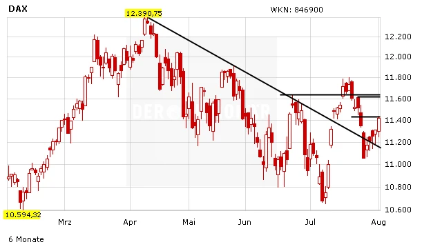 Der deutsche Leitindex hat indes die Marke von 11.400 Punkten überwunden. Bei 11.427 Zählern wartet das 50%-Fibonacci-Retracement der Abwärtsbewegung von 11.800 auf 11.050 Zähler. Sollte diese Hürde gemeistert werden, wartet der nächste signifikante Widerstandsbereich bei 11.625/35 Punkten.
