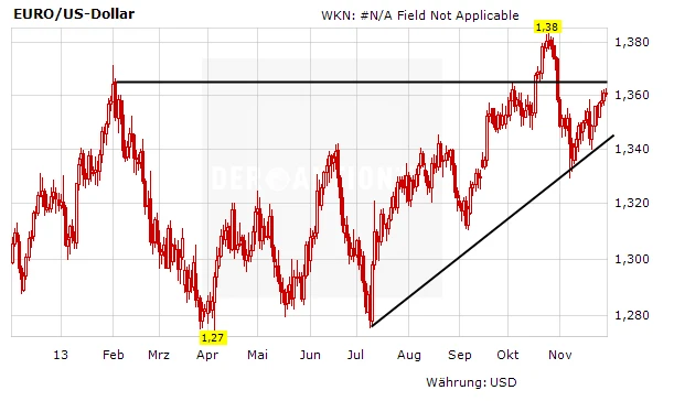 Der Euro kletterte in der vergangenen Woche zwischenzeitlich über die Marke von 1,36 Dollar. Beflügelt wurde der Kurs unter anderem von dem erfolgreichen Abschluss der Koalitionsverhandlungen zwischen der Union und der SPD.