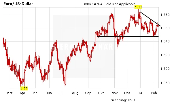 Nachdem der Euro in den vergangen Tagen wieder zulegen konnte, prallte die Notierung am gestrigen Dienstag an der Abwärtstrendlinie bei 1,3671 Dollar ab. Aus charttechnischer Sicht ist nun vorerst wieder Luft bis zum alten Bewegungstief bei 1,3483 Dollar.
