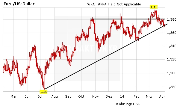 Ende der vergangenen Handelswoche sorgten die neuesten Daten des amerikanischen Arbeitsmarktes für starke Kursschwankungen und drückten den Euro zeitweise unter die Marke von 1,37 Dollar. Im März war die Zahl der Beschäftigten in der größten Volkswirtschaft der Welt deutlich stärker gestiegen als zum Jahreswechsel. Die US-Regierung revidierte außerdem den Stellenzuwachs im Februar deutlich nach oben, während sich die Arbeitslosenquote im März unverändert bei 6,7 Prozent gehalten hatte.