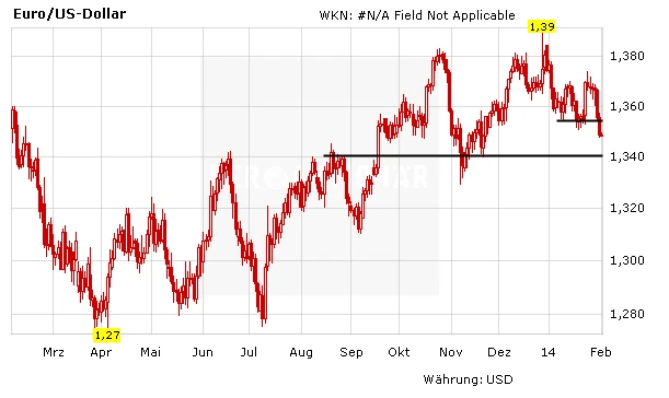 Der Euro notiert im frühen Handel am Montag unter der Marke von 1,35 Dollar. Für Verkaufsdruck sorgten am Freitag die jüngsten Daten zur Inflation in der Eurozone. Nach Zahlen der Statistikbehörde Eurostat war die Inflationsrate im Januar um 0,1 Punkte auf 0,7 Prozent gefallen.