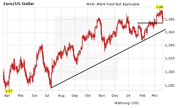 Die Anleger, die der Long-Empfehlung (WKN CZ0 E2S/Kaufkurs: 9,78 Euro) des AKTIONÄR gefolgt sind, bleiben investiert. An der horizontalen Unterstützung bei 1,3750 Dollar dürfte der Verkaufsdruck vorerst auslaufen und eine Gegenbewegung starten.