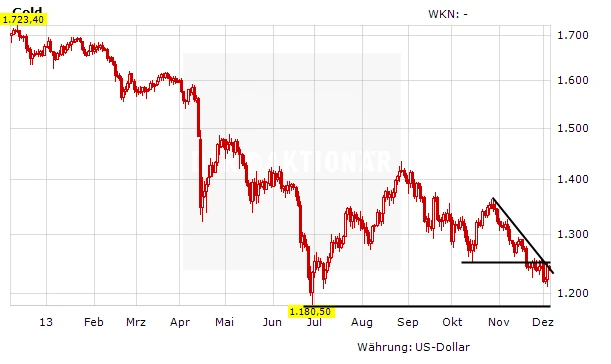 Als Grund für den plötzlichen Anstieg führen Händler charttechnische Gesichtspunkten sowie die Eindeckung von Leerverkaufspositionen an, die mit weiter fallenden Goldnotierungen gerechnet hatten. Positiv dürfte sich zudem der wieder etwas schwächer tendierende Dollar ausgewirkt haben. Zudem hat sich die Befürchtung, die Fed könnte ihren Kurswechsel zu einer leicht strafferen Geldpolitik eventuell noch in diesem Jahr einläuten, etwas verflüchtigt, nachdem sich die Stimmung im US-Dienstleistungssektor im November überraschend deutlich eingetrübt hat.