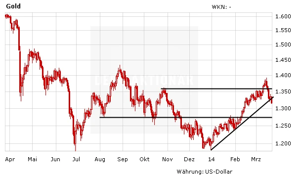 Noch aber ist nichts verloren. Die seit Juli ausgebildete Doppelboden-Formation kann durchaus noch nach oben aufgelöst und damit der seit August 2011 gültige Abwärtstrend beendet werden. Dazu ist aber ein Anstieg über das Zwischenhoch bei 1.423 Dollar erforderlich.