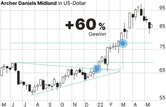 Hinterher ist man immer schlauer. Im Leben wie an der Börse hat diese Redewendung durchaus ihre Daseinsberechtigung. Oder hatten Sie den eher unbekannten US-Agrar-Riesen Archer Daniels Midland (ADM) schon vor Kriegsbeginn als potenziellen Highflyer-Kandidaten auf dem Kurszettel? Einer hatte die Aktie schon Ende Dezember im Visier – und auf der Basis charttechnischer Signale mittels idealem Hebel zum Kauf empfohlen. Wer dieser Expertise gefolgt ist, erreichte in 8 Wochen das Kursziel von satten 60 Prozent Gewinn – in der Spitze gar 206 Prozent, wer länger gehalten hat. Ein Einzelfall? Nicht im Geringsten.