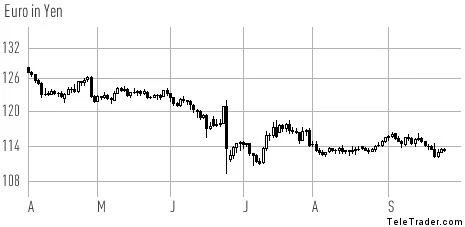 Der Yen hat zum Wochenauftakterneut an Stärke gewonnen. Der Euro verliert im Verhältnis zur japanischen Leitwährung 0,2 Prozent auf 113,28 Yen. Noch ist das Jahrestief weit genug entfernt, doch die Tendenz ist eindeutig.