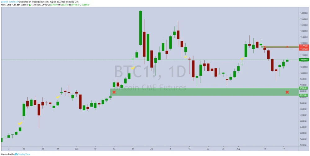 Die CME-Futures gibt es bereits seit dem Bitcoin-Allzeithoch im Dezember 2017 und bis dato wurde jede entstandene Lücke früher oder später gefüllt. Bis vor dem Ausbruch im April 2019 wurde den Futures noch sehr wenig Aufmerksamkeit geschenkt, da vor allem das Volumen viel zu niedrig war. Das änderte sich aber nachdem der Bitcoin am 17. Mai von 8.000 US-Dollar auf 6.320 Dollar gefallen war und damit die Lücke bei 6.430 Dollar geschlossen hat.