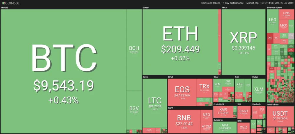 Der Kryptomarkt findet zu Wochenbeginn keinen klaren Trend. In den Top 20 nach Marktkapitalisierung halten sich moderate Gewinner und Verlierer in etwa die Waage. Der Bitcoin notiert dabei auf 24-Stunden-Sicht so gut wie unverändert. Der Kampf um die Marke von 10.000 Dollar dauert damit an.