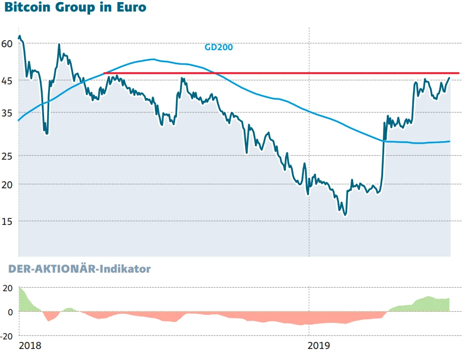 Einer der Profiteuer dieses Anstiegs ist die Bitcoin Group, die die deutsche Kryptobörse Bitcoin.de betreibt. Klar, nur ein Bruchteil des weltweiten Bitcoin-Handels läuft über Bitcoin.de. Doch Jan Flaskämper, Mitgründer des Handelsplatzes, erklärte bereits im April gegenüber dem AKTIONÄR, dass sich Anstiege von Bitcoin-Kurs und Handelsvolumen auch „unmittelbar“ im operativen Geschäft der Plattform niederschlagen.